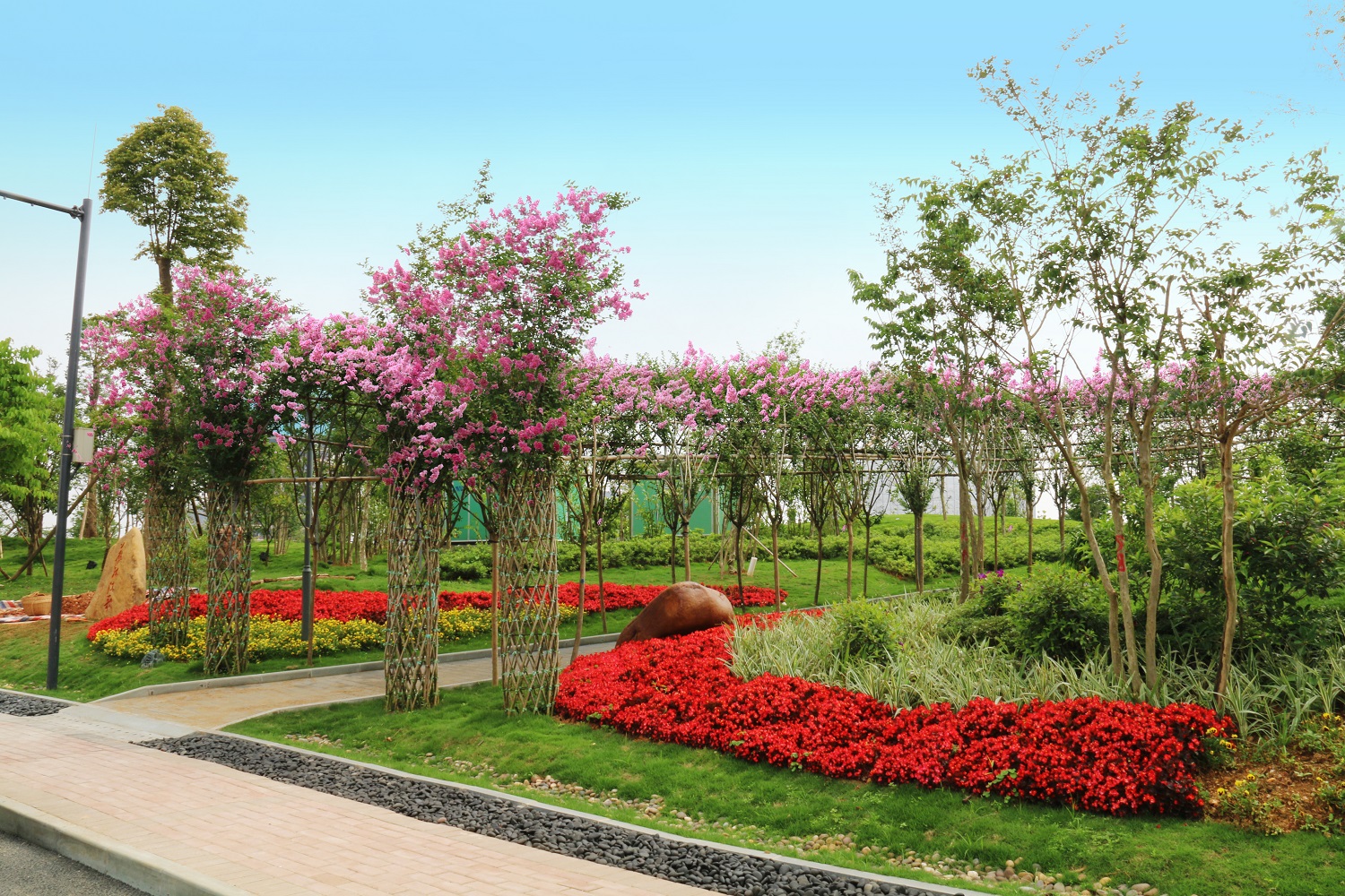 項(xiàng)目特色:設(shè)計(jì)因地制宜、依山就勢(shì),結(jié)合山地建筑設(shè)計(jì)、坡面生態(tài)修復(fù)等景觀手法解決現(xiàn)狀高差過大、土質(zhì)疏松等問題,采用生態(tài)保護(hù)設(shè)計(jì)手法,結(jié)合山形地貌建設(shè)廣西首個(gè)紫薇專類園和南寧市首個(gè)戶外趣味山地自行車賽道;利用豎向變化設(shè)計(jì)全園雨水收集利用系統(tǒng),實(shí)現(xiàn)“海綿城市”構(gòu)想。